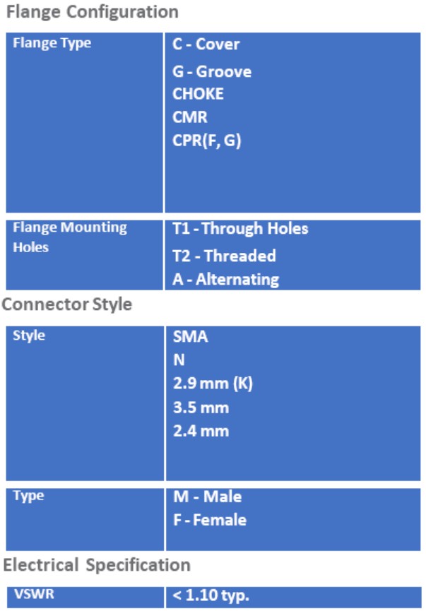 WR75 | 10.00 - 15.00 | • | • | • | • | • | 121-75-SMA-F-C-TX | link | SMA | 1.01" | 0.65" | |