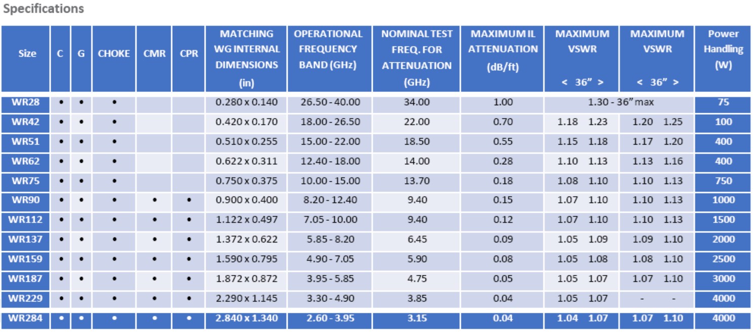 Part Description UBS offers a line of twistable flexible or flexible waveguide sections. These sections are manufactured from spiral-wound silver-plated conductors covered with a protective, pressure-tight black neoprene or silicone rubber jacket. All standard waveguide flanges are available. In addition to the popular standard line of flanges listed, UBS offers a complete line of industry-standard flange styles upon request. Please specify the length that is required.