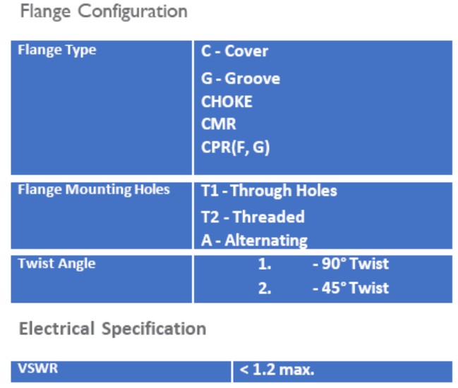 UBS offers a custom product line of Electroformed step twist covering waveguide sizes from WR-90 through
